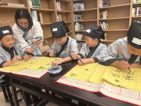 活动主要分成三大板块。端午知识小课堂。由老师介绍端午的由来、诗歌、传统习俗等内容,从历史渊源、民间信仰、自然节律等角度深层次了解端午的文化寓意;书法学习和体验。认识书法工具,学习书法的书写技巧,将端午祝福写在纸上,传递节日祝福,为传统节日注入新的活力和创意;手工制作“书法粽”。学生根据老师的指导,将宣纸折成一枚“墨香粽”,书法粽不仅传承书法艺术和端午习俗,更是文化的象征,承载着人们对节日的记忆和情感。